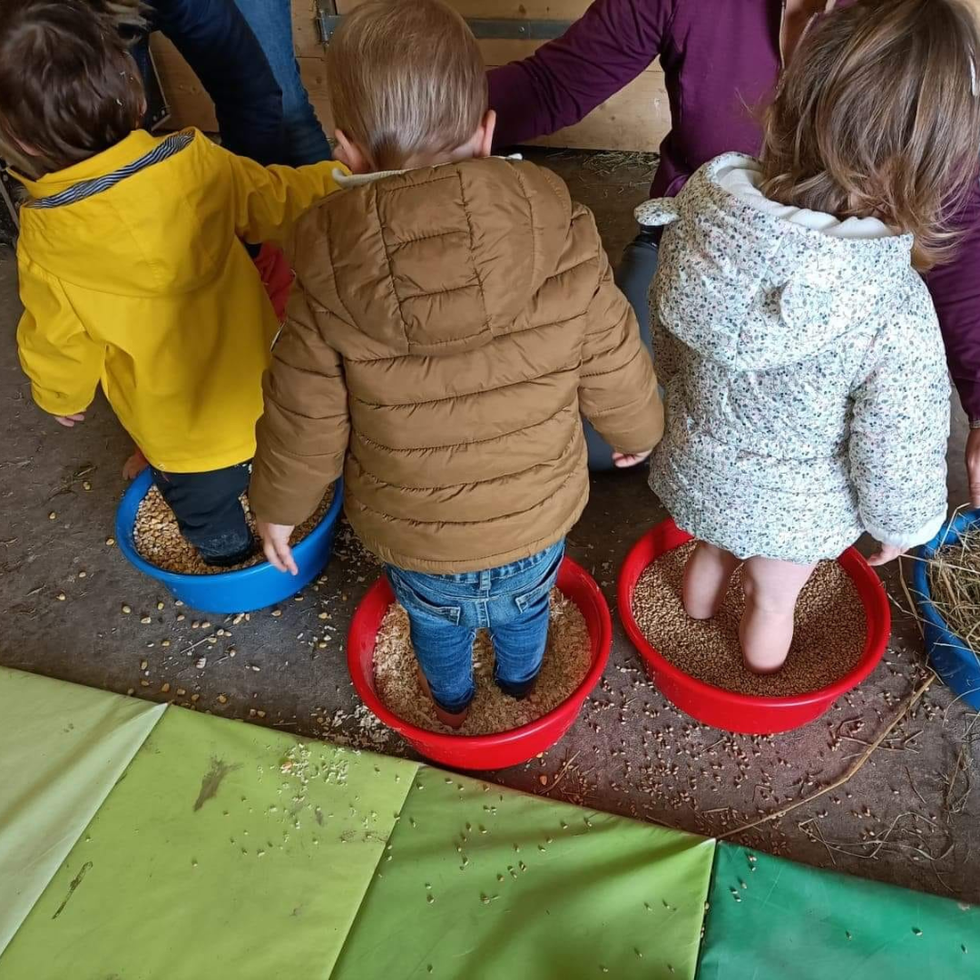 Il connait les animaux grâce à des livres d’image et voudrait interagir avec eux, les toucher, les soigner « pour de vrai » ? C’est possible avec nos ateliers ! Les thèmes varient en fonction de l’actualité de la ferme (naissances, météo, occasions) et permettent une véritable immersion sensorielle.
